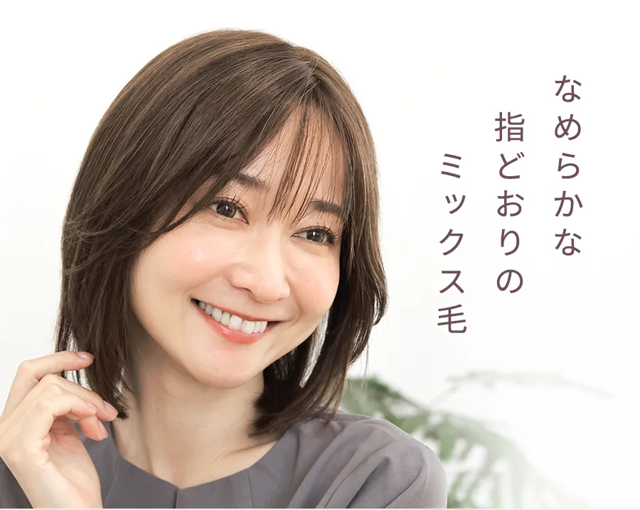 毛髪はふんわりやわらか。見た目の自然さだけでなく、なめらかな指通りと触り心地。