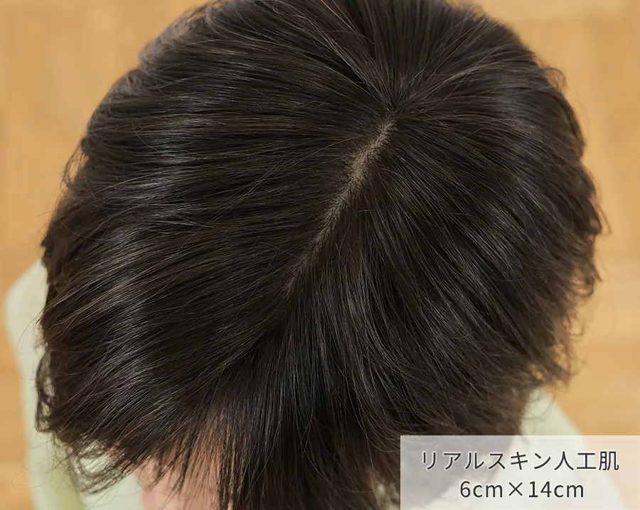 気になる頭頂部には薄手でソフトな感触の人工肌を採用。まるで地肌から髪が生えているようなリアルさで上から見られても安心です。