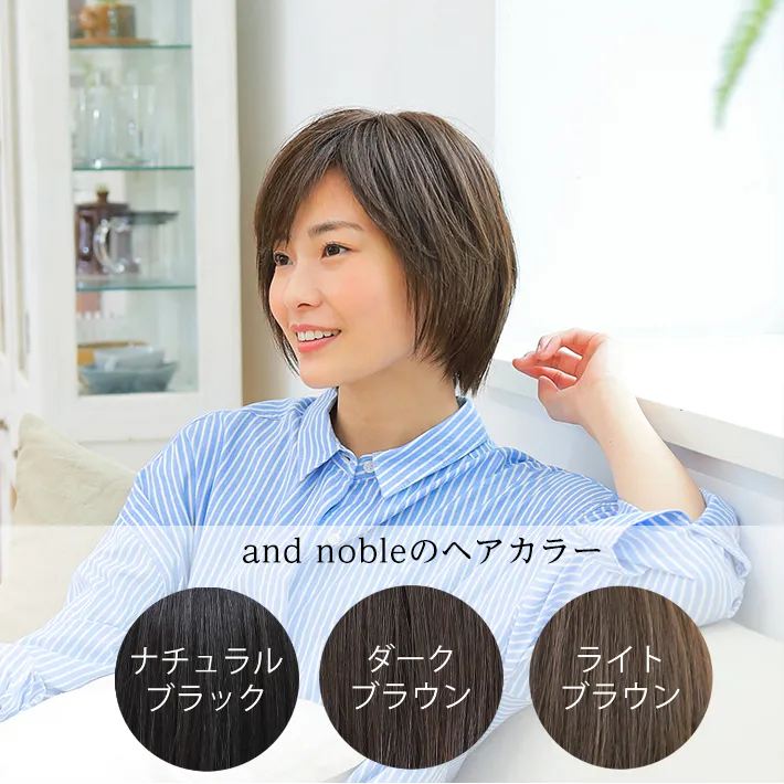 アンドノーブルの髪色はすべて『ブレンドカラー』。6〜8種類の微妙に異なった色の髪をバランスよく混ぜて作られるブレンドカラーは、自然な風合いとともに、立体感と深みをもたらします。